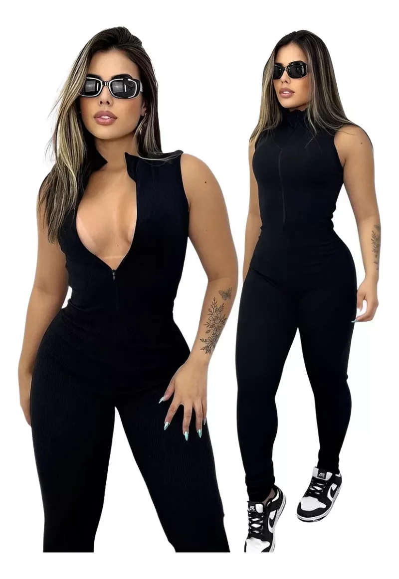 Macacão Longo Regata Ziper Virginia Balada Canelado Premium