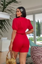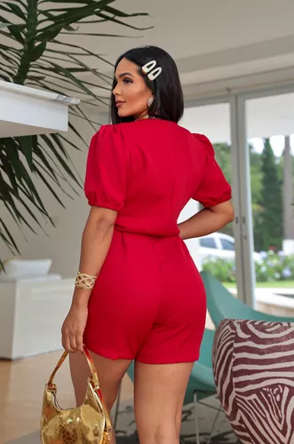 Macaquinho Feminino Shorts Saia Alfaiataria Com Decote V